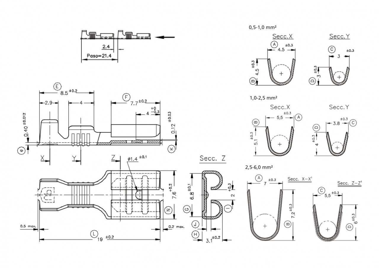 Dimensiuni papuc 6,3mm x 0,8mm.