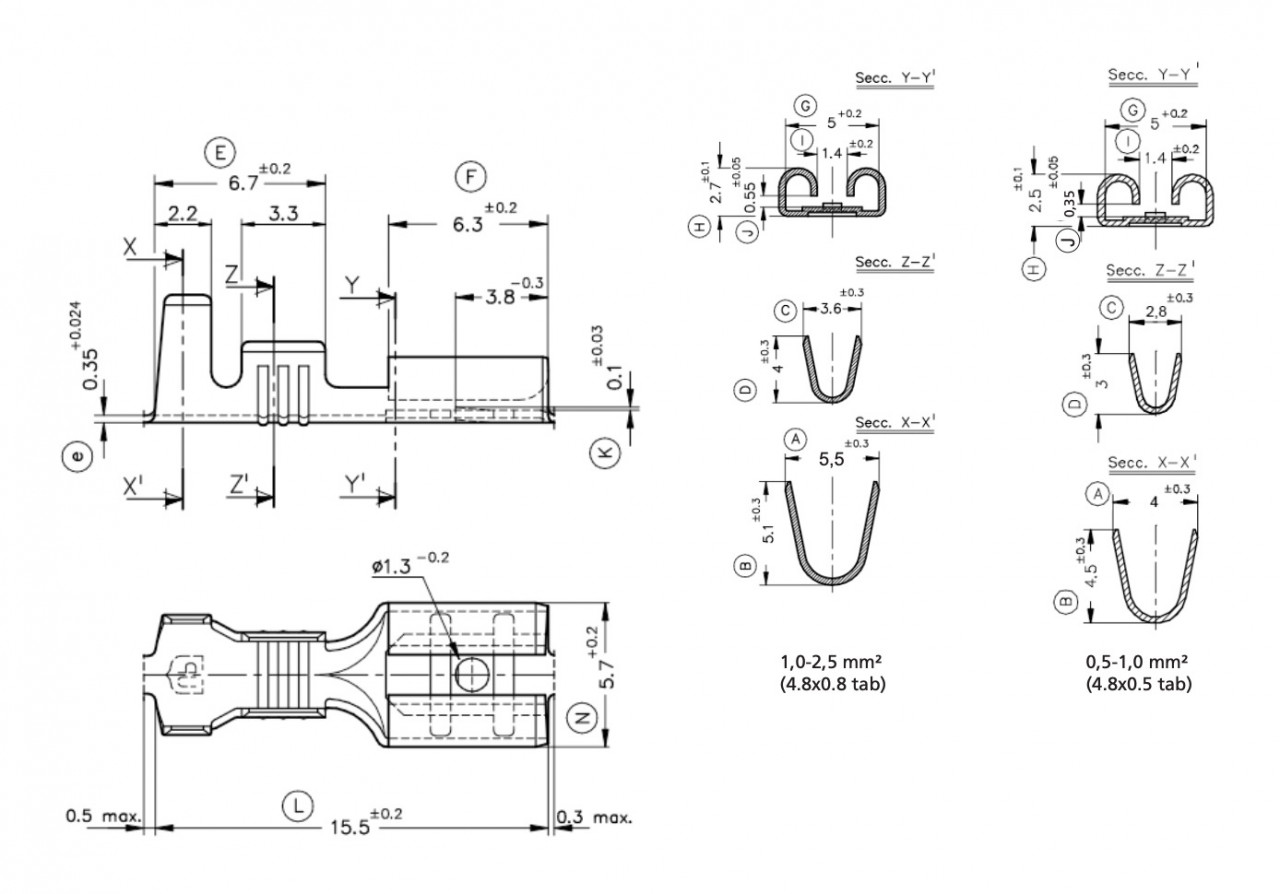 Dimensiuni papuc 4,8 mm x 0,8mm.