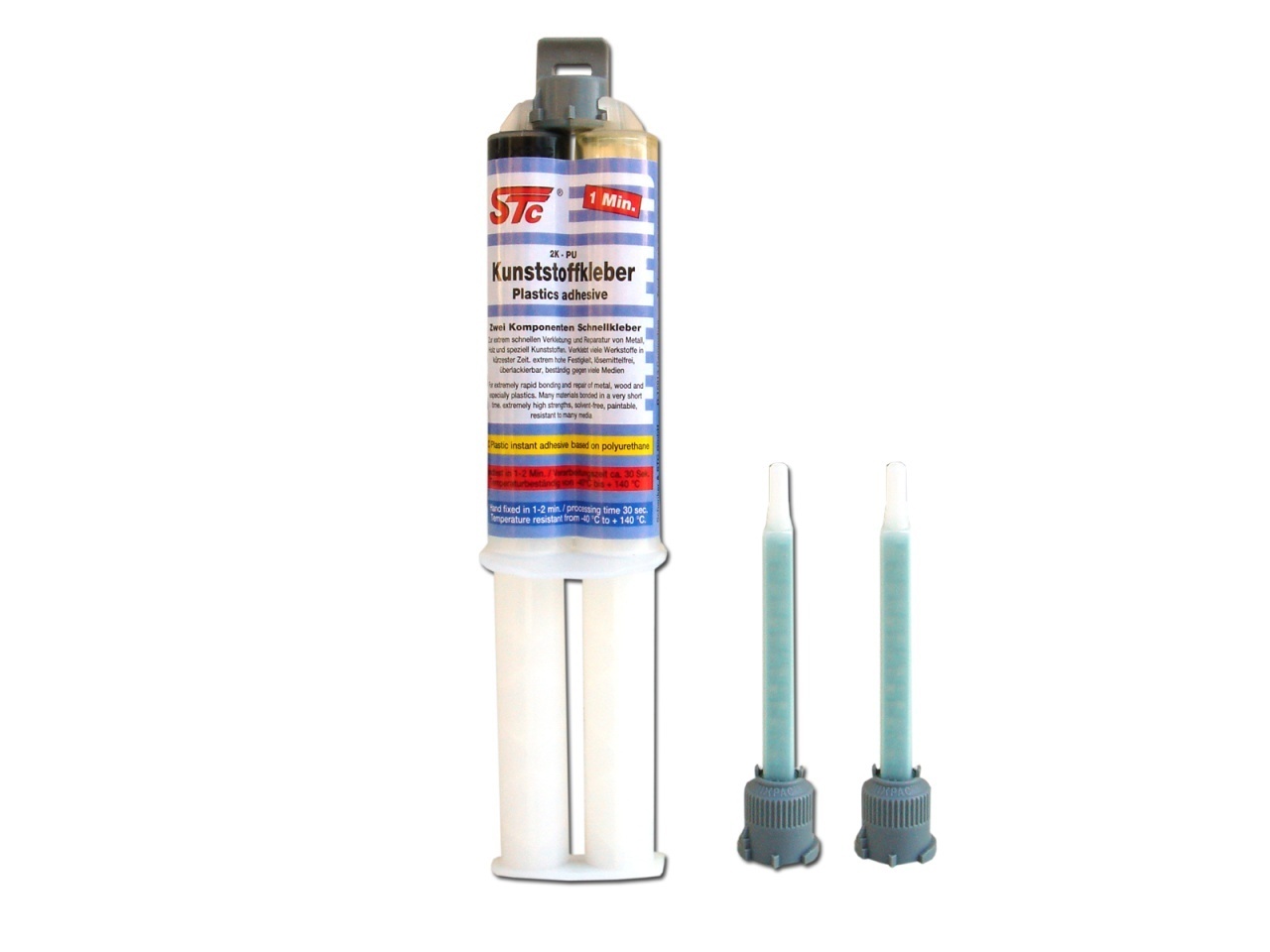 Adeziv STC pentru lipit plastic PUR 2K 1min, seringa dubla + 2 mixere 25g