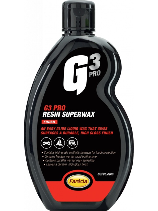 Finisaj de lungă durată, luciu ridicat Ceară de alunecare ușoară Protectie de pana la 4 luni G3 Pro Resin Superwax este special formulat cu un sistem de protecție interconectat și un amestec unic de ceară. Ceara noastră lichidă concentrată pentru autovehicule este alegerea ideală pentru pasionații de mașini care caută o soluție ușor de aplicat pentru protejarea caroseriei de pelicula de trafic de zi cu zi și de un luciu impresionant. De ce să alegeți o ceară lichidă pentru mașini în detrimentul ceară cu pulverizare sau pastă? Când vine vorba de produse de îngrijire auto, există mai multe tipuri de ceară disponibile, inclusiv ceară lichidă, spray și pastă. Iată de ce ați putea alege G3 Pro Resin Superwax: Aplicare ușoară: Ceara lichidă pentru mașini, precum G3 Pro Resin Superwax, oferă o aplicare lină și consistentă pentru o acoperire uniformă și face procesul de epilare ușor. Protecție de lungă durată: Ceara noastră lichidă pentru mașini oferă până la 4 luni de protecție împotriva acumulării zilnice de pelicule de trafic pe suprafața mașinii dumneavoastră. Această protecție extinsă vă ajută să vă păstrați mașina curată și lucioasă pentru perioade mai lungi. Strălucire superioară: amestecul unic de ceară din G3 Pro Resin Superwax oferă un finisaj lucios asemănător oglinzii, care lasă mașina dvs. un aspect uimitor și bine întreținut.Ce spun clientii