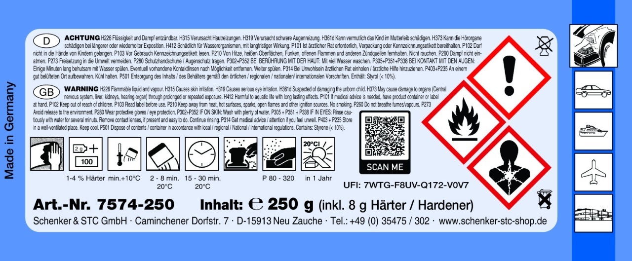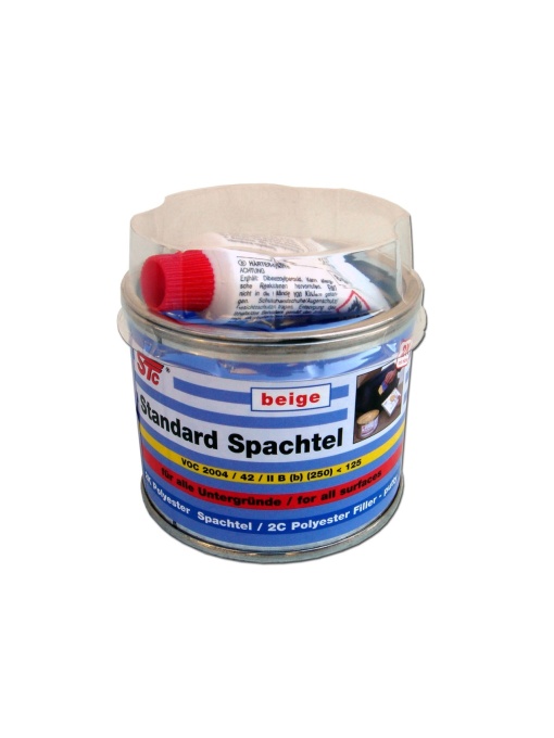 STC Chit Standard Bej 250 g – cod 7574-250S este un chit poliesteric universal destinat reparațiilor auto și lucrărilor de pregătire a suprafețelor înainte de vopsire. Formula sa permite umplerea eficientă a zgârieturilor, denivelărilor și micilor imperfecțiuni apărute pe elementele de caroserie. Oferă aderență foarte bună pe suprafețe metalice șlefuite, grunduite sau pe strat vechi de vopsea bine pregătit. Chitul se aplică ușor, are timp de întărire optim pentru lucrări rapide și se șlefuiește facil, asigurând o suprafață uniformă și pregătită pentru aplicarea grundului și a vopselei. Ambalajul de 250 g este ideal pentru reparații punctuale și intervenții rapide în ateliere auto sau lucrări individuale. Beneficii principale Chit poliesteric universal pentru caroserie Umplere eficientă a imperfecțiunilor Aderență bună pe metal și suprafețe pregătite Șlefuire ușoară după întărire Ideal pentru reparații locale auto Alege STC Chit Standard Bej 250g pentru pregătire profesională a suprafețelor și obținerea unui finisaj uniform înainte de vopsire. STC Chit Standard 250g – reparații auto rapide. Chit poliesteric pentru caroserie. Umplere eficientă și șlefuire ușoară. Ideal pentru reparații locale auto. Ai nevoie de un chit auto pentru reparații rapide și eficiente? STC Chit Standard Bej 250g oferă umplere uniformă, șlefuire ușoară și pregătire optimă pentru vopsire.Ce spun clientii