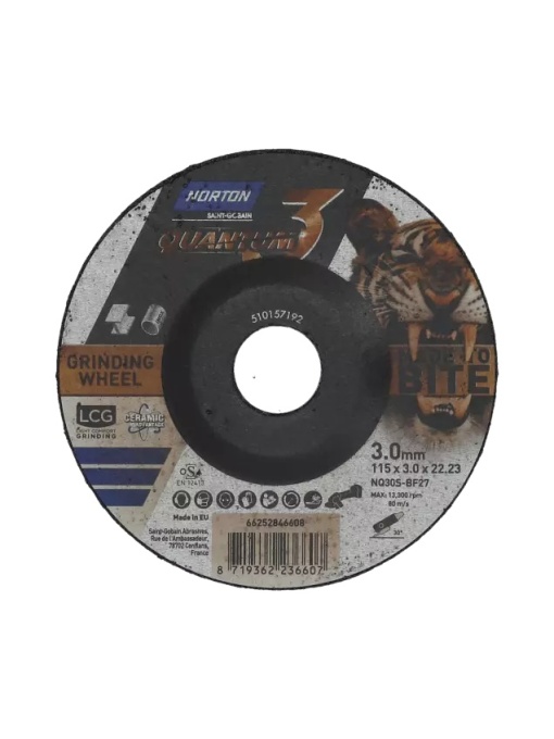 Discul de polizare Norton Quantum3 LCG , dimensiunea 125 × 3.0 × 22.23 mm , tip T27 , este conceput pentru profesioniști care urmăresc eficiență maximă, control superior și un confort crescut în timpul lucrului. Cu ajutorul tehnologiei avansate Norton Quantum3, acest disc oferă o polizare extrem de rapidă, o durabilitate sporită și vibrații reduse, fiind ideal pentru lucrări de șlefuire a metalelor și îndepărtarea materialului în aplicații industriale. Granulația premium ceramică oferă un transfer optim al forței, iar designul special LCG (Low Contact Grinding) reduce contactul inițial, permițând o tăiere mai lină și un control excelent. Modelul T27 îl face perfect pentru șlefuire plană sau semi-laterală. Caracteristici principale Model: Norton Quantum3 LCG Cod produs: 66252846609 Dimensiuni: 125 × 3.0 × 22.23 mm Tip disc: T27 (înclinat) Abraziv: ceramic premium Norton Construcție durabilă pentru aplicații industriale Proiectat pentru polizare agresivă cu vibrații reduse Beneficii Tăiere rapidă și agresivă , ideală pentru îndepărtarea materialelor dure Durată de viață mai mare datorită granulelor ceramice autoascuțitoare Reduce oboseala operatorului datorită vibrațiilor scăzute Temperatura scăzută în timpul polizării – risc redus de ardere a metalului Control excelent și stabilitate în aplicații profesionale Compatibil cu polizoare unghiulare standard 125 mm Recomandat pentru Ateliere metalurgice Industrie și producție Lucrări de reparații și întreținere Îndepărtarea sudurilor Debavurare și modelare metal Norton Quantum3 LCG 125×3.0×22.23 T27 este alegerea ideală pentru profesioniști care caută performanță constantă, rezistență și confort în cele mai solicitante aplicații de polizare.Ce spun clientii