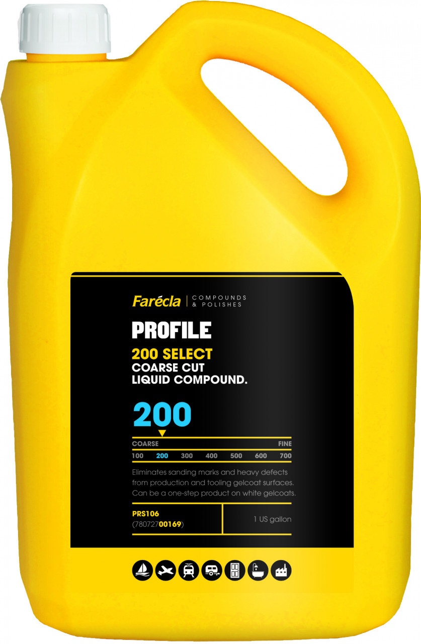Elimină urmele de șlefuire și defectele grele de pe suprafețele de gelcoat de producție și scule. Poate fi folosit ca proces într-o singură etapă de la P800 sau P1000 pentru lustruirea rapidă a gelcoat-urilor albe de producție în zonele în care nu este necesar un finisaj în oglindă. Profile 200 Select este un compus de tăiere versatil, de mare valoare, destinat aplicațiilor OEM. Folosit cu un burete de lână răsucită G Mop, Profile 200 Select îndepărtează rapid urmele de șlefuire P800 sau mai fine de pe scule sau straturile de gel de producție, proces într-un singur pas. Funcționează cel mai bine atunci când este agitat înainte de utilizare și rulează la viteză mare (2000 – 3500 rpm)Ce spun clientii