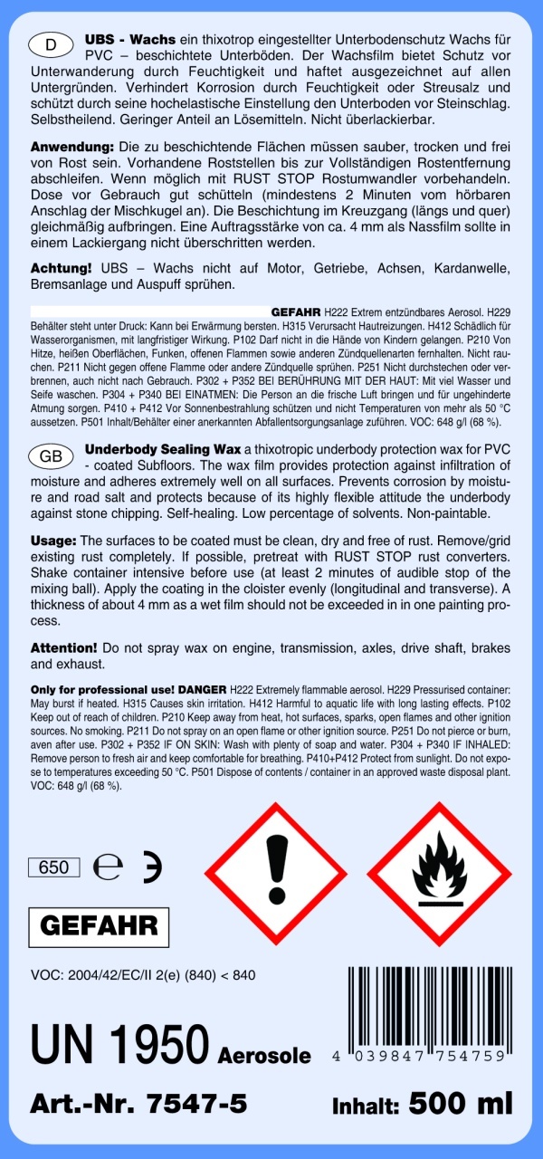 Spray ceara STC, neagra, pentru protectie podea auto - 3850, 500ML