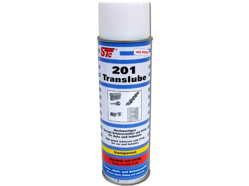 STC 201 Translube este un lubrifiant special cu PTFE STC 201 este un spray de ulei pentru lubrifiere permanentă de la -21°C până la + 260°C. Rezistent la apă dulce și sărată. Poate fi folosit ca agent de separare, alunecare și lubrifiant. Potrivit și pentru cilindri de blocare, deoarece uleiul nu se se lipește. Caracteristici: Lubrificare permanentă de la -21°C până la + 260°C nu devine rășinoas sau lipicioas potrivit și pentru cilindri de închidere rezistent la apa dulce si sarata Specificatii tehnice: Culoare: transparent Interval de temperatură: - 21°C până la + 260°C Valoare VOC: 208 g/l (27,75% conținut de solvent) Domenii de aplicare: Pentru lubrifierea mecanismelor de schimbare a vitezelor atât în interiorul, cât și sub vehicul, pe pedale, balamalele ușilor și mecanismele geamurilor. În zona motorului: pentru cabluri, legături de carburator, etc. Pentru arcuri lamelare, axuri de rotire, stâlpi de baterie, transmisii cu lanț, legături de frână de depășire, roți de sprijin la camioane sau rulote. Pe vehicule cu două roți pe lanțuri, articulații și trageri de cablu.Ce spun clientii